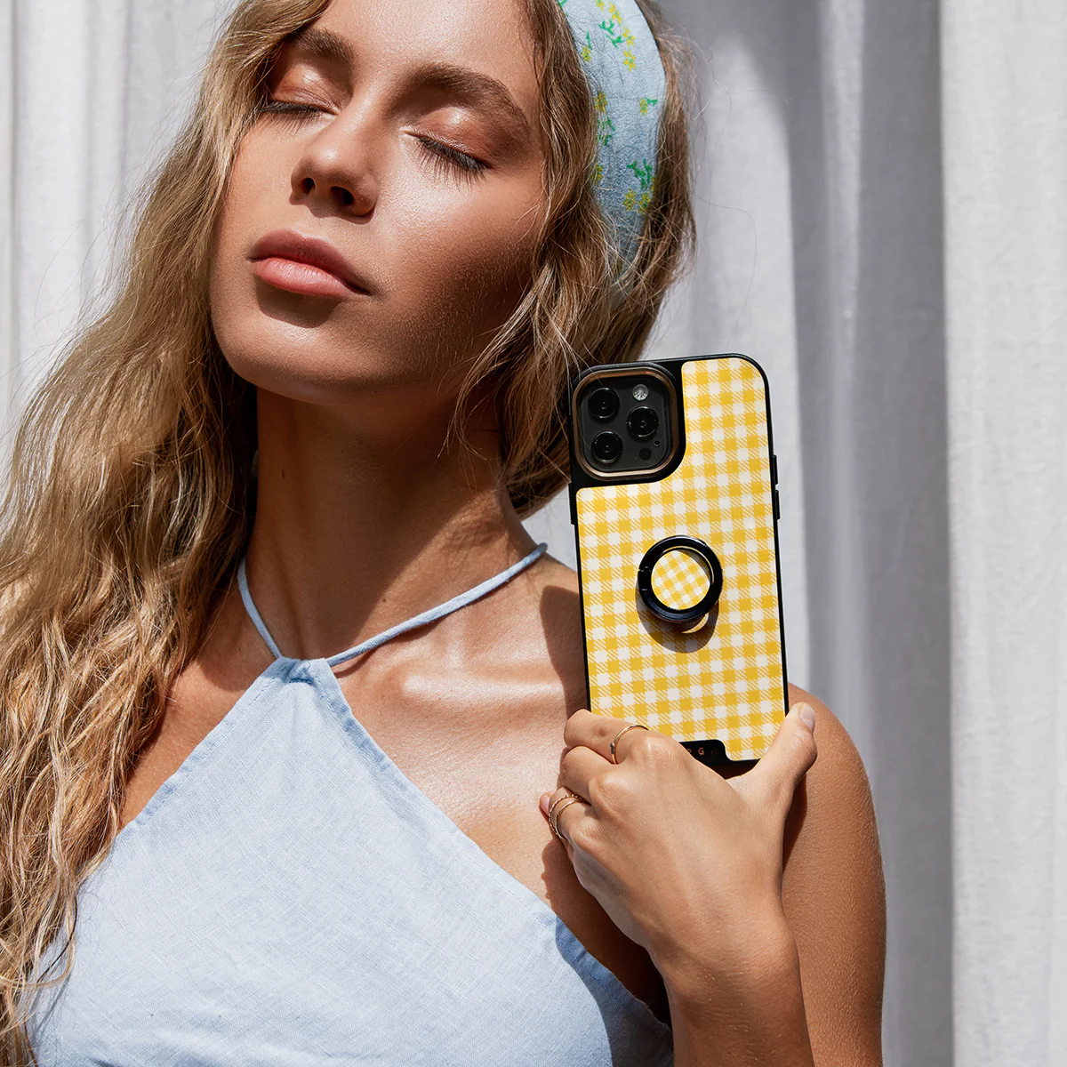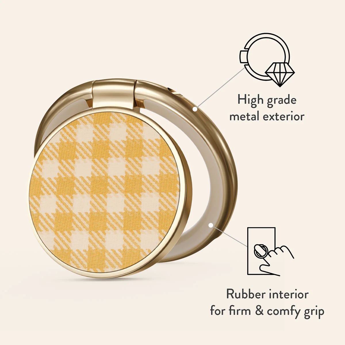 Tuscan Sun - Yellow Plaid Adhesive Ring Holder