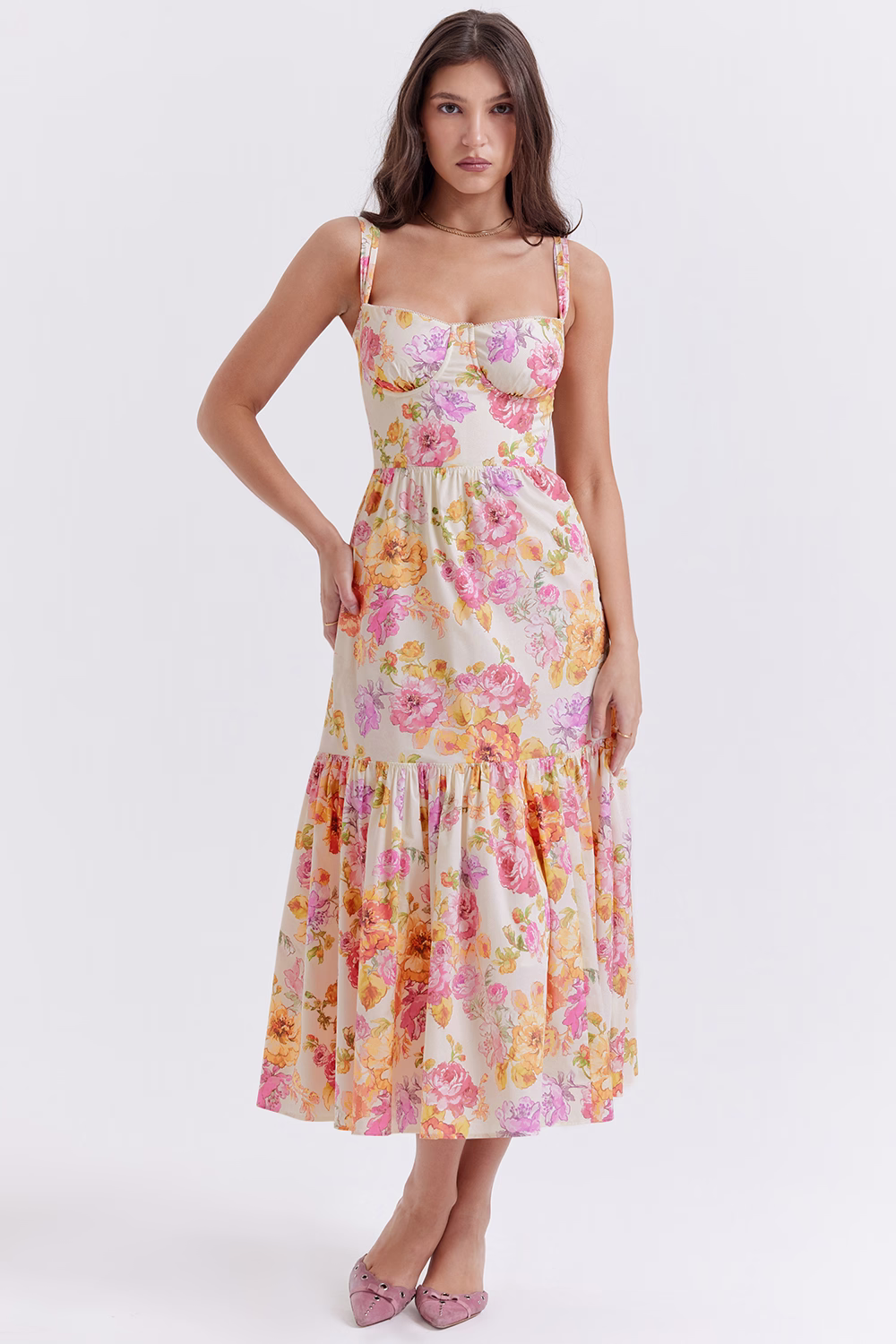 'Elia' Ivory Floral Midi Sundress