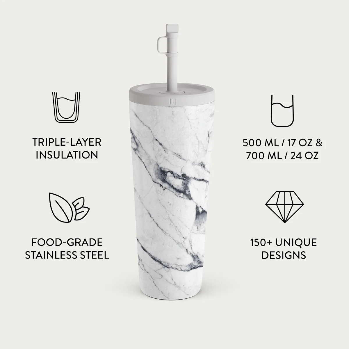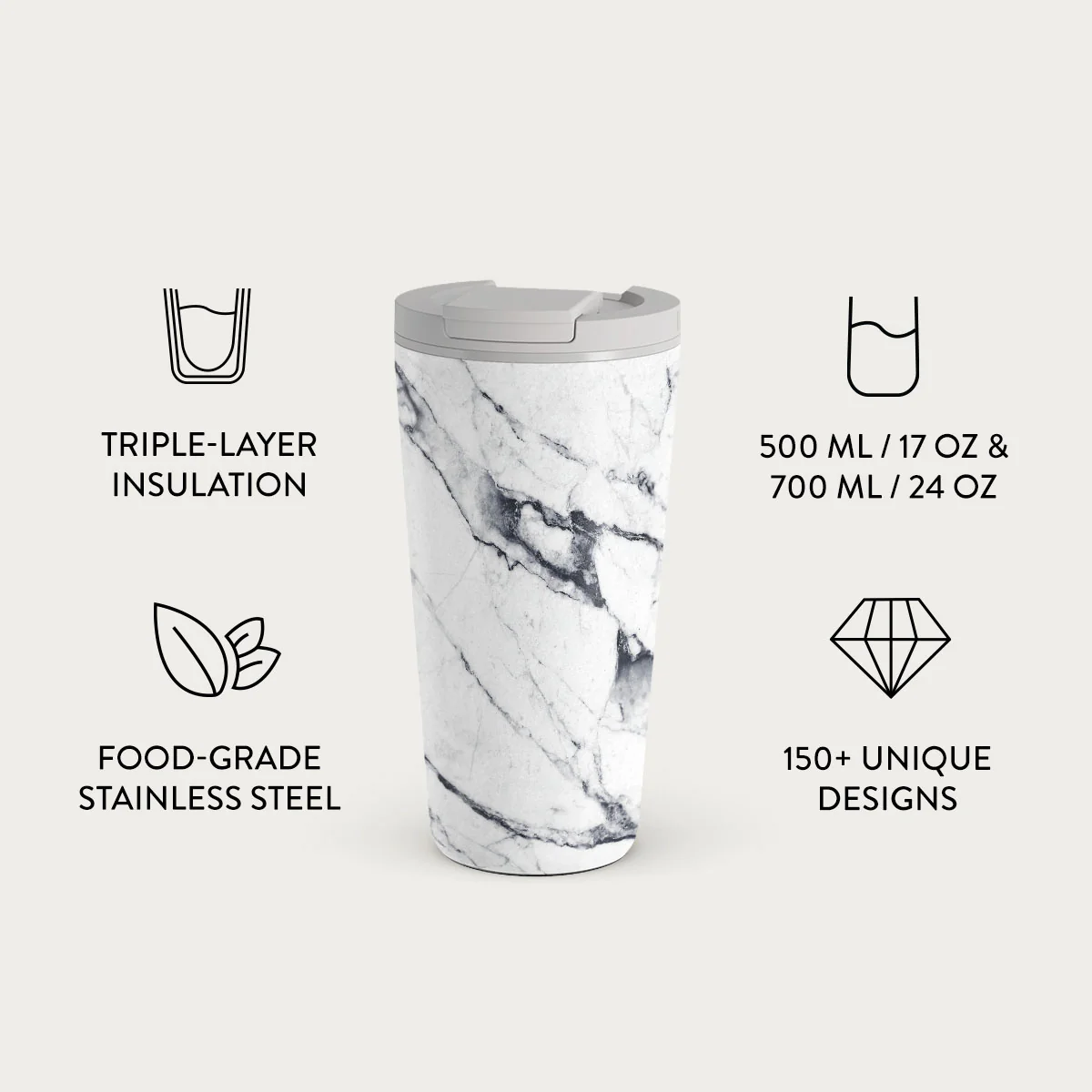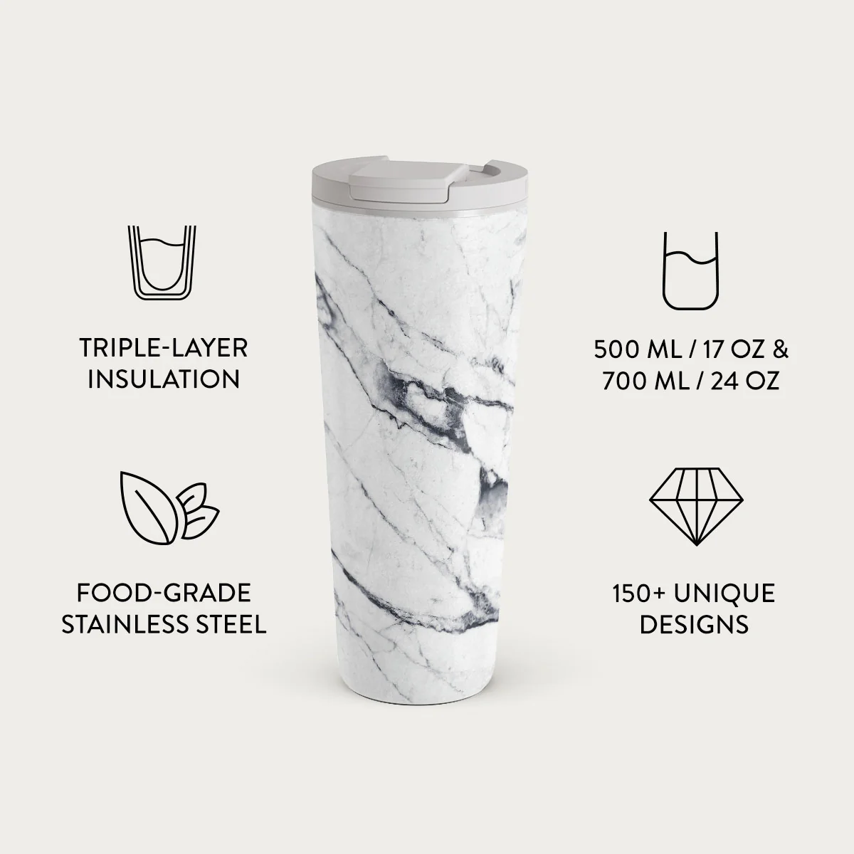 Satin White - Marble Travel Mug