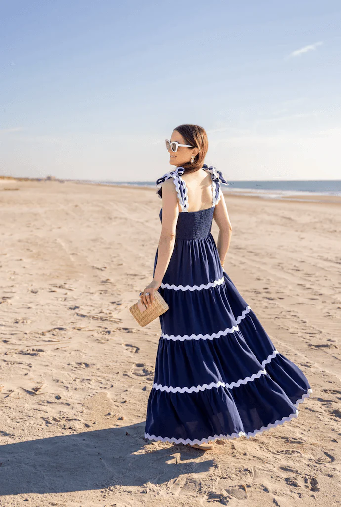 Ric-Rac Bow Strap Maxi Dress Navy