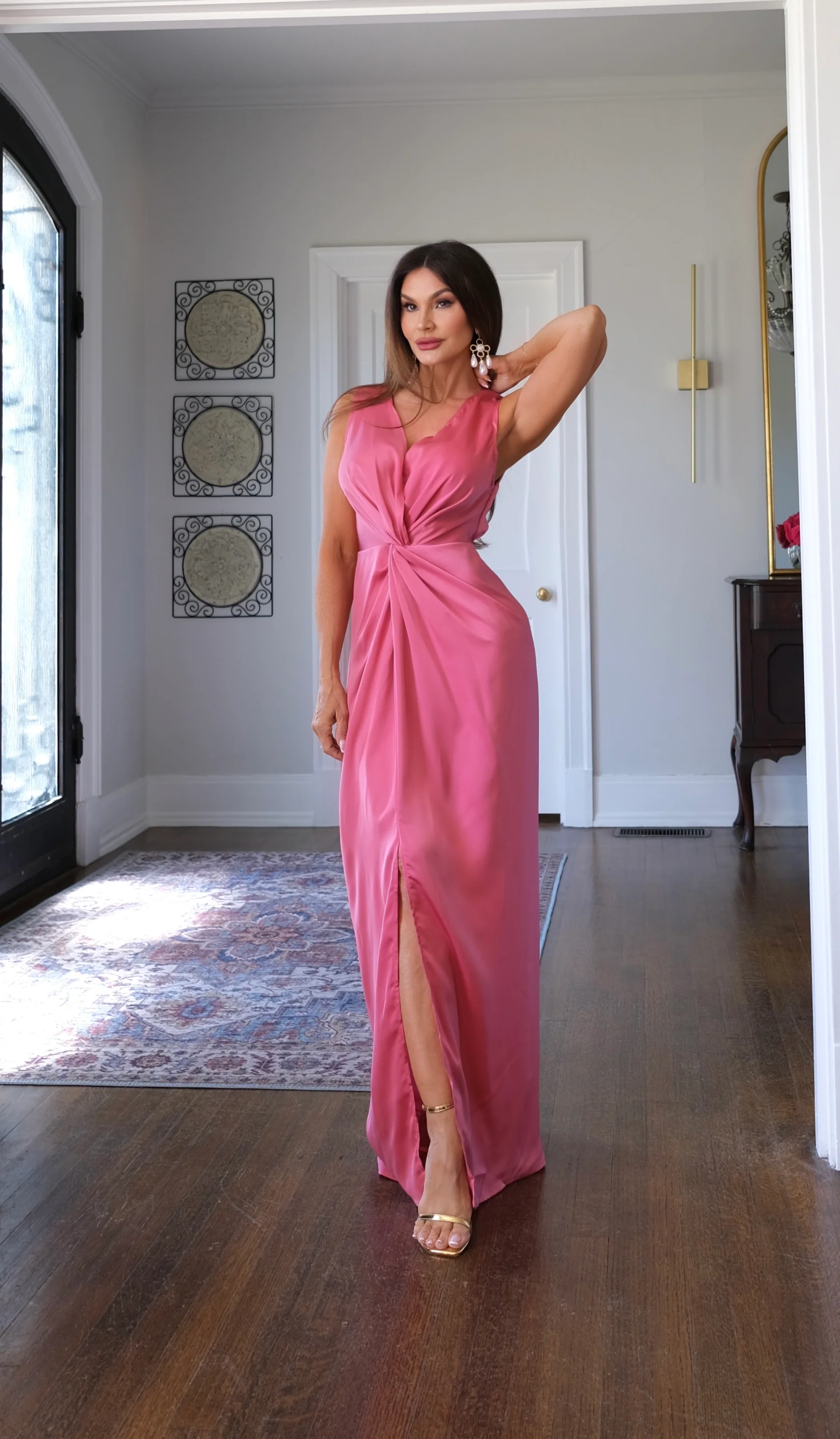 Rebel rose satin knotted v neck maxi dress