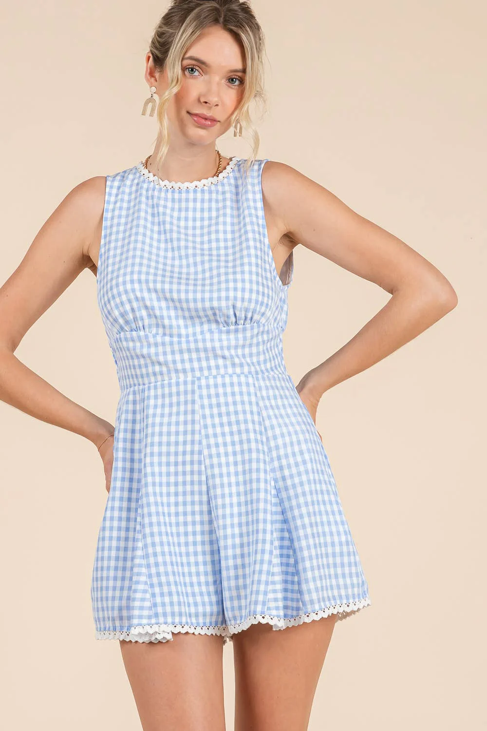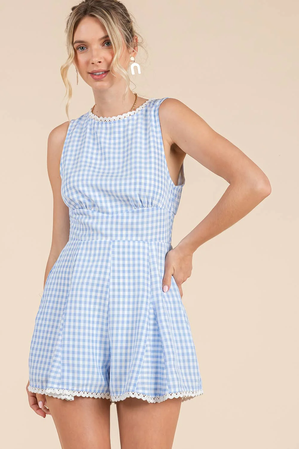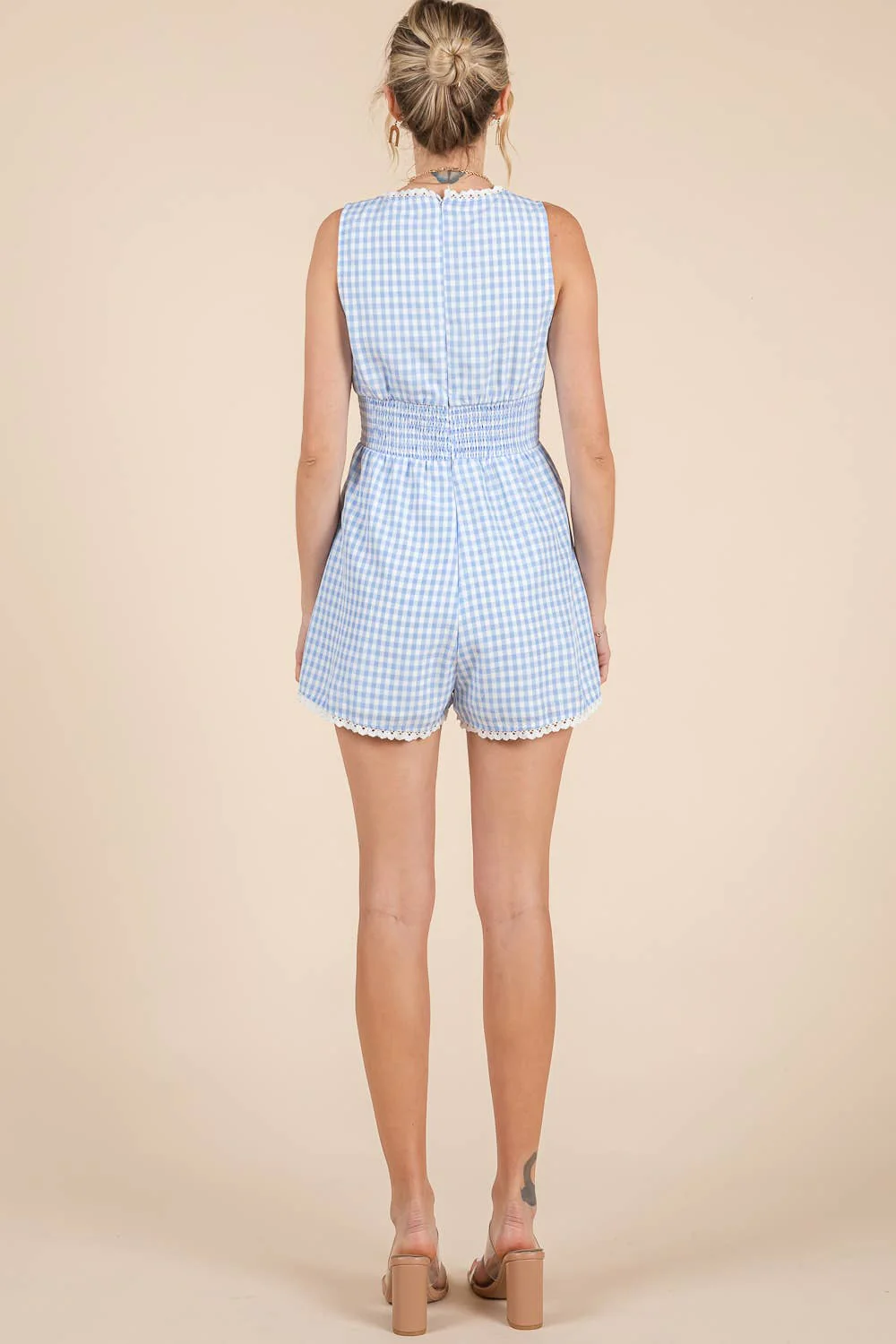 Blue Gingham Lace Romper