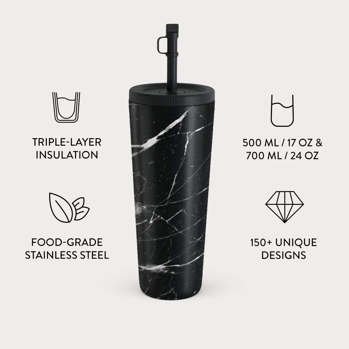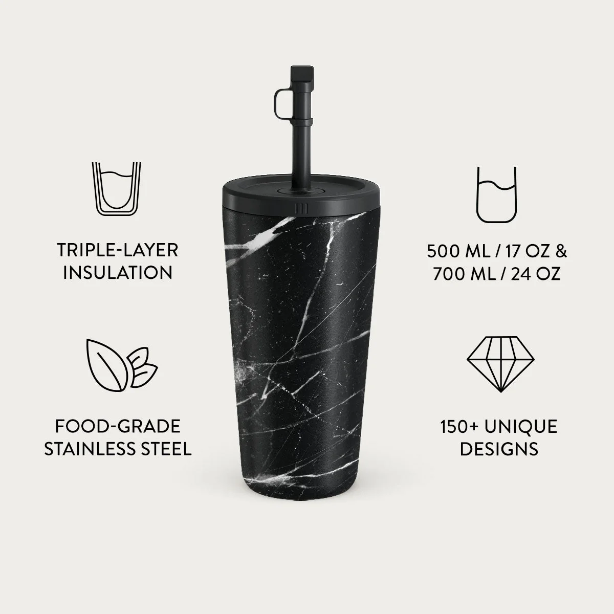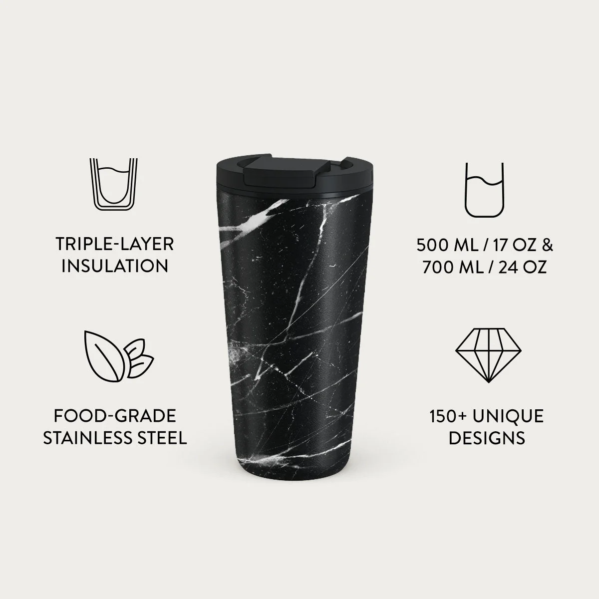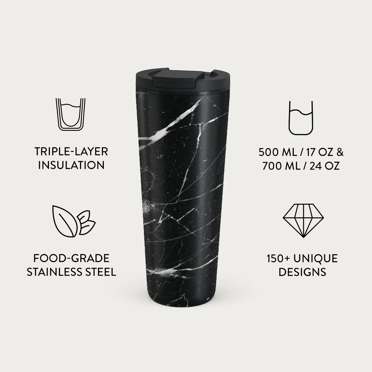 Noir Origin - Black Marble Travel Mug