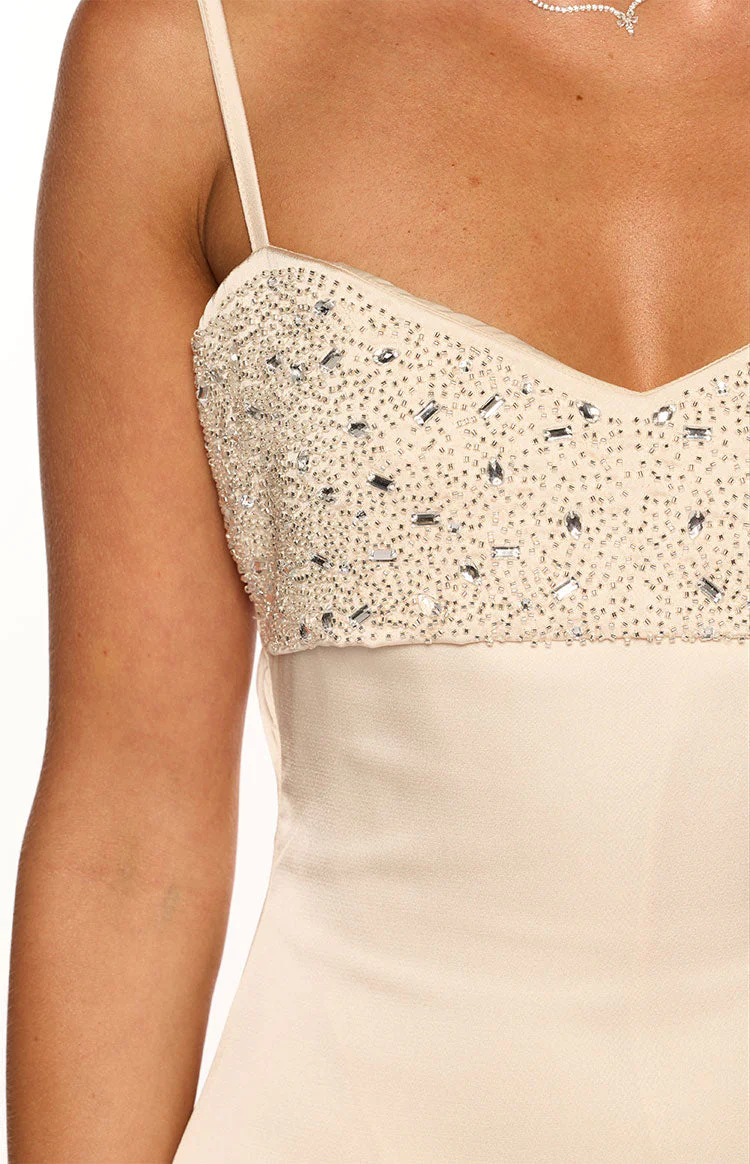 Fran Cream Sequin Contrast Party Mini Dress